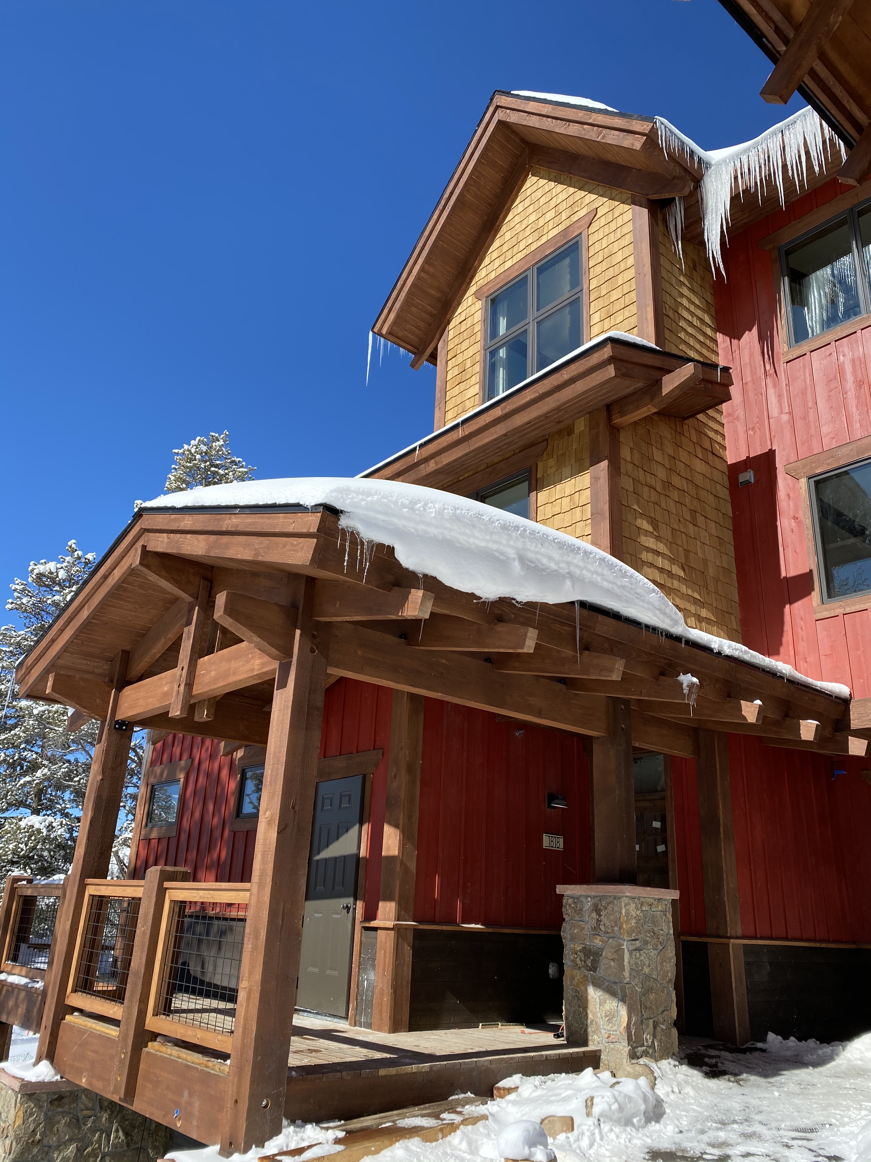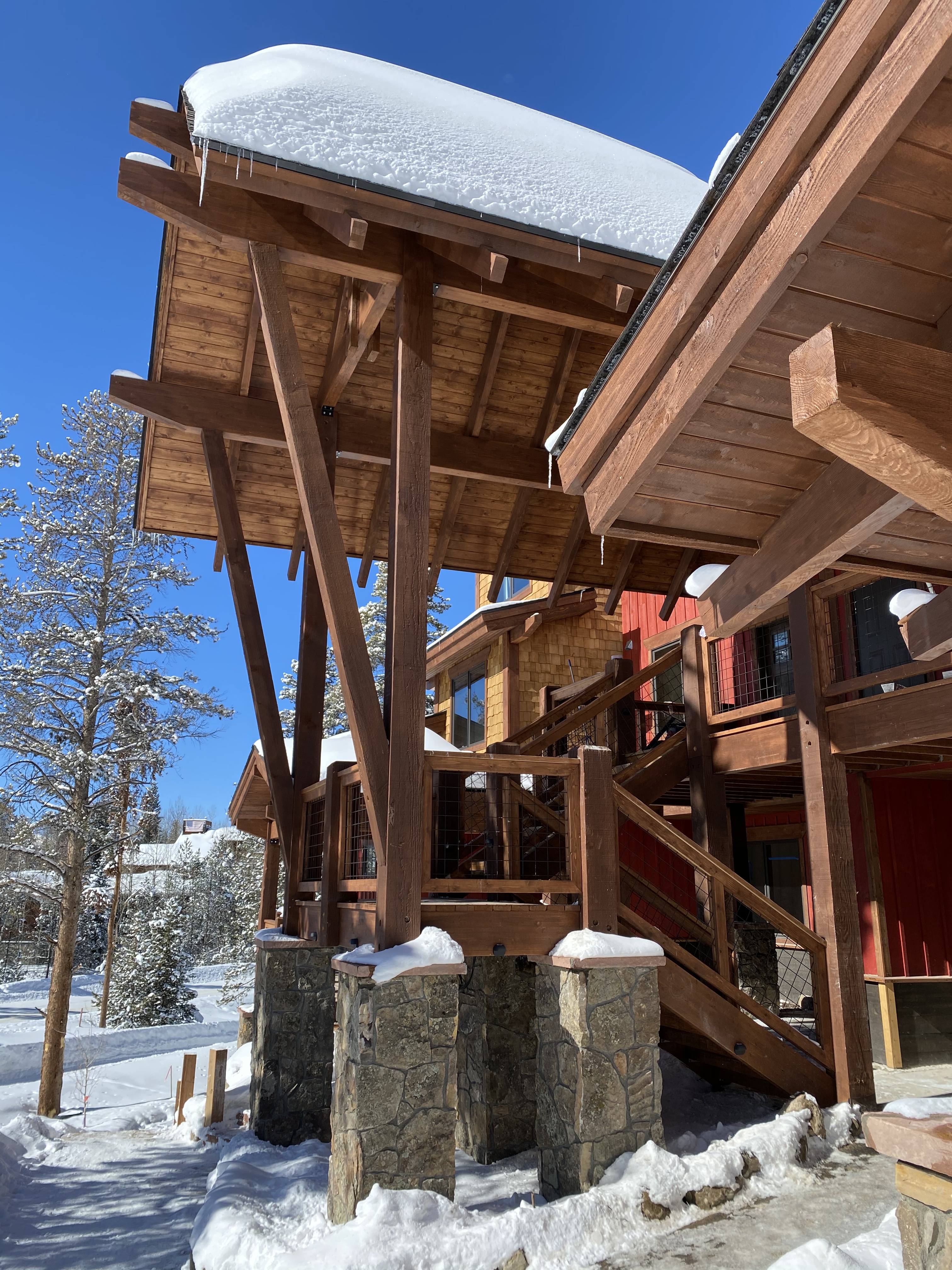 The exteriors of these new construction condominium buildings feature large lodge-like beams, impressive overhangs to prevent snow accumulation, large window plans, moss rock accents, and an attractive color scheme to compliment the existing Seasons at Keystone complex.