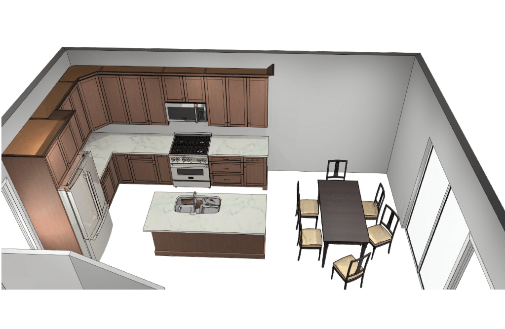 Next, we will be introducing a contemporary L-shape layout with a spacious island, seamlessly connecting the kitchen to the dining area. This open-concept design not only enhances the flow of the living space but also encourages social interaction, making it perfect for hosting guests and family gatherings.